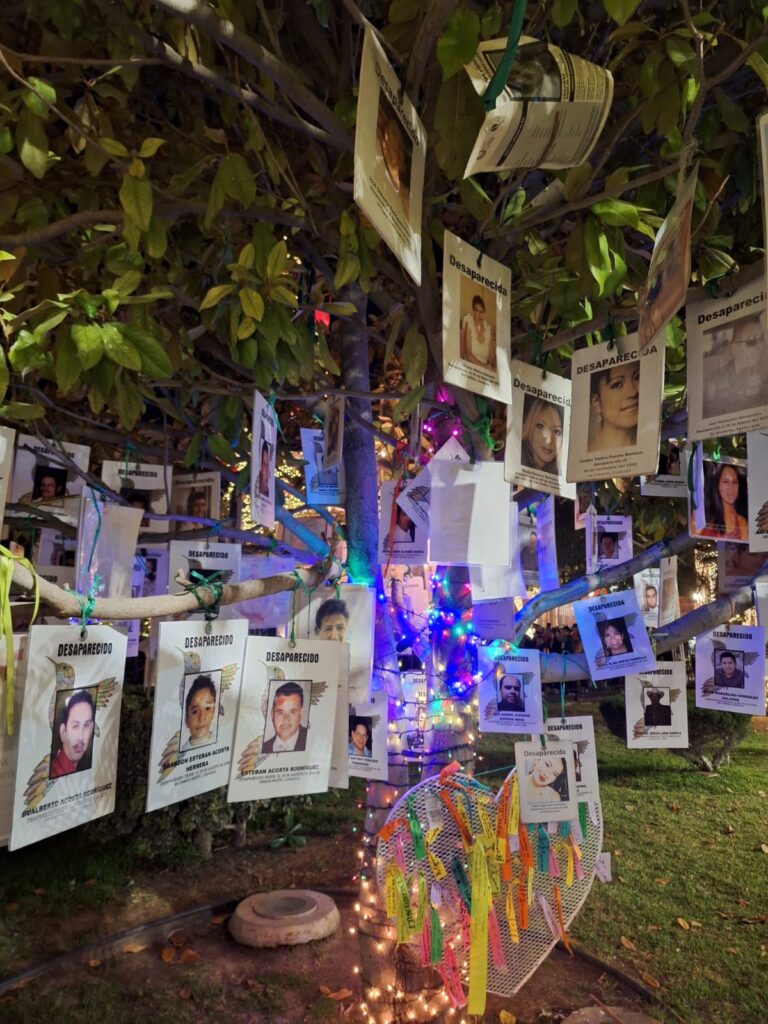Desde una perspectiva sociopolítica, el Árbol de la Esperanza alcanzó otra performatividad al combinar la dicha de los festejos decembrinos con las resistencias actuales que los colectivos de búsqueda mantienen 24/7 para localizar e identificar a todas las personas desaparecidas de México.