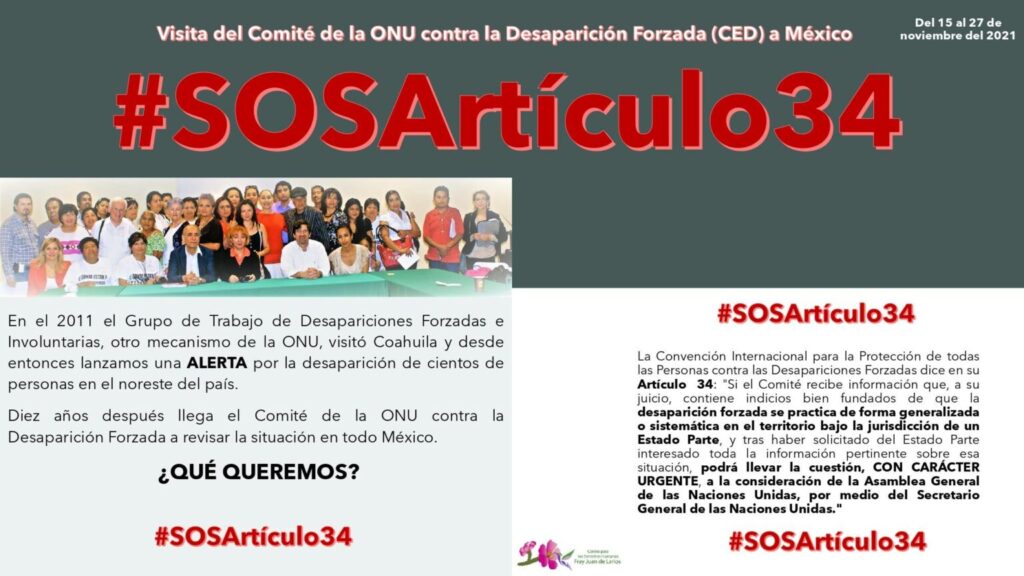 Familias del estado de Coahuila jugaron un papel fundamental en la determinación para que el Comité de Desaparición Forzada de la ONU llevará hasta la Asamblea General la grave crisis que en la materia registra México.