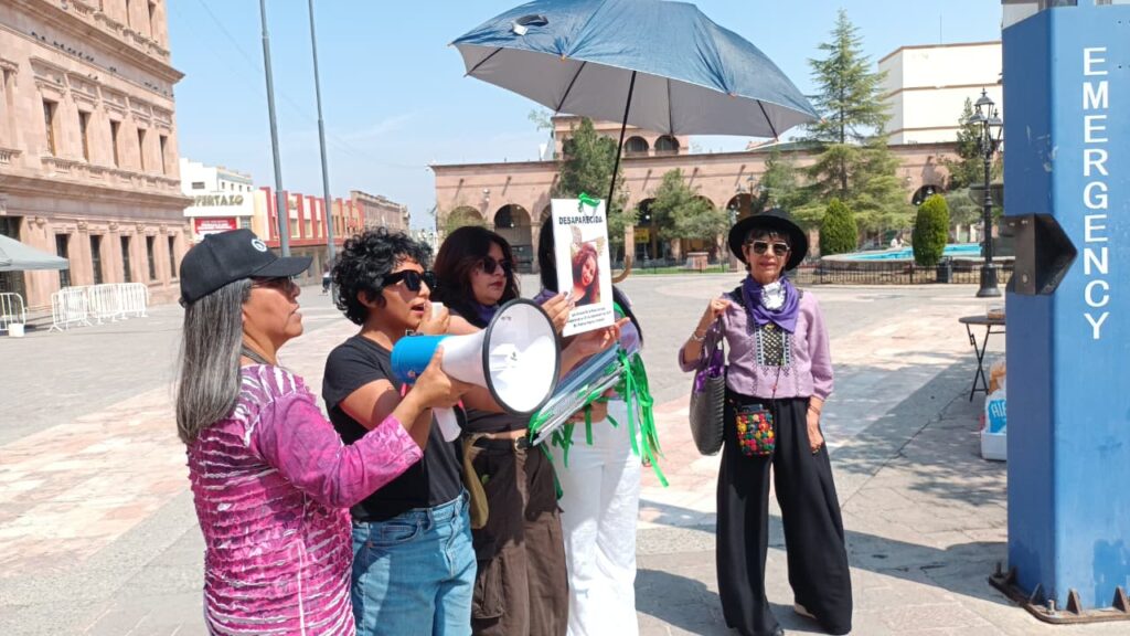 En el marco de la conmemoración del 8 de marzo, integrantes de Fuerzas Unidas por Nuestros Desaparecidos en Coahuila (FUUNDEC) y el Centro de Derechos Humanos “Fray Juan de Larios” colocaron un antimonumento a un lado del Árbol de la Esperanza en la Plaza de Armas de Saltillo.