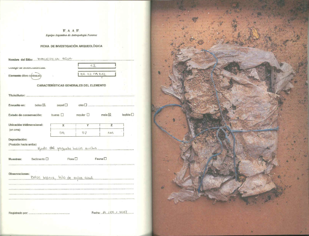 Pero la excavación fue abordada con la misma cautela y precaución que cuando se trata de huesos. Utilizaron las técnicas de la arqueología forense: utilizaron las mismas herramientas para las excavaciones, documentaron cada hallazgo en fichas donde anotaban las características del elemento como su estado de conservación, su tamaño y las observaciones.