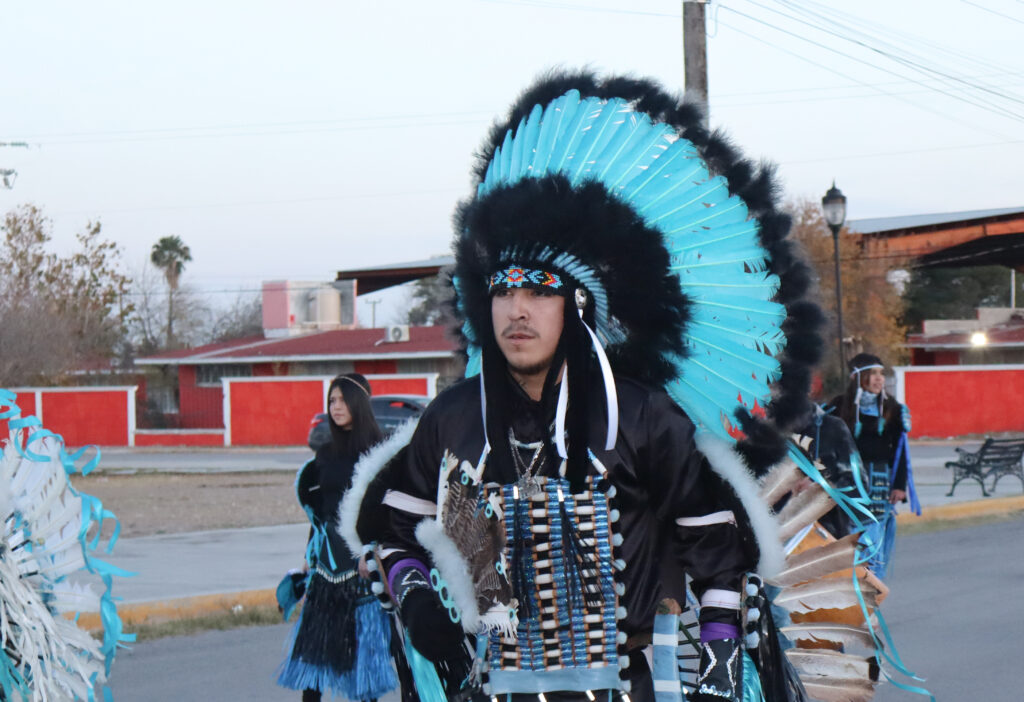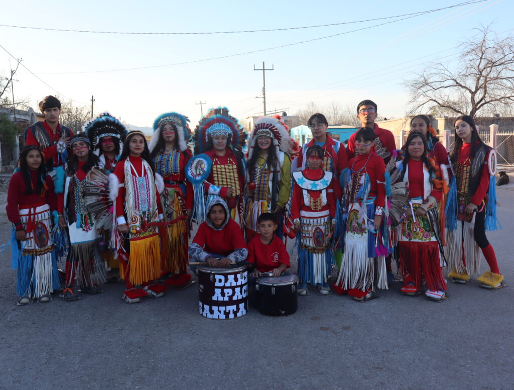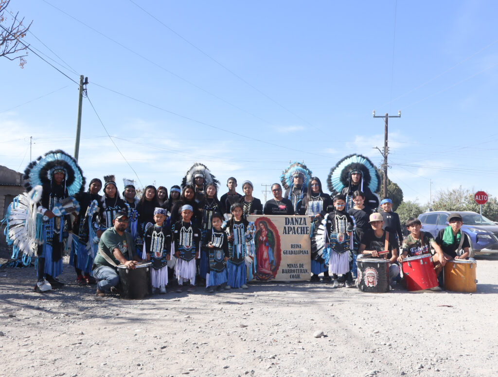 —Es una danza apache, nos basamos en una tradición de aquí de la región: la tribu Kikapú de Múzquiz. Uno de los capitanes de nombre Yoed Morín es carbonero, el viejo de la danza fue minero y algunas danzantes también eran hijas de trabajadores de las minas de AHMSA.