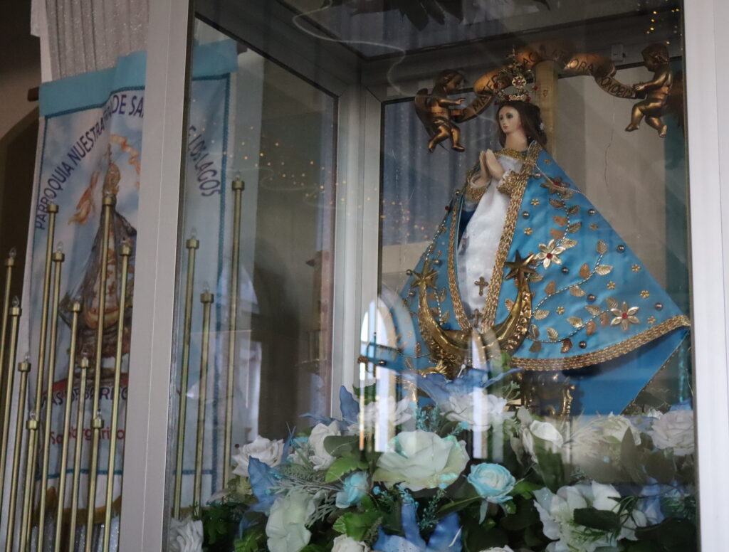 La procesión se detuvo. En medio, un hombre alto y moreno marchaba solitario cargando un estandarte con la imagen de Nuestra Señora de San Juan de los Lagos. Tuvimos una conversación entre el murmullo de las rezanderas: